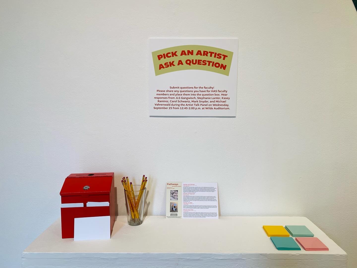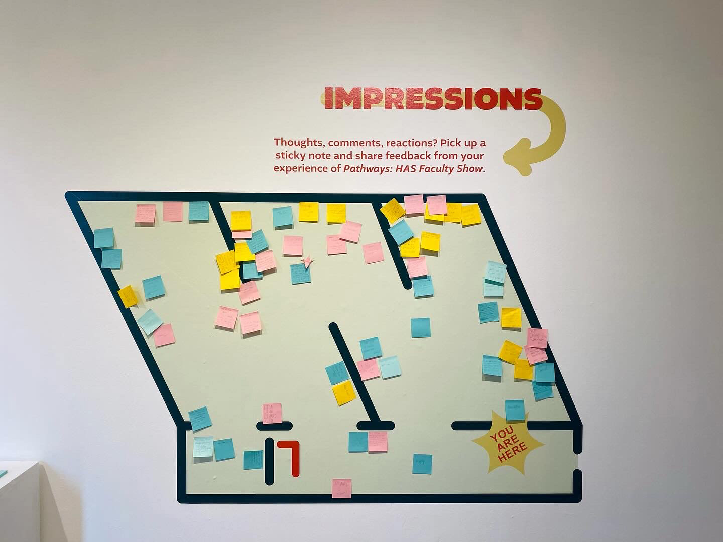As an Art History Intern myself and 7 other students created the Pathways: Hartford Art School Faculty Showcase. For 8 months I have been working on the graphic design for the show. My role as exhibition designer was to design didactics and advertisement material which included, the wall text, wall labels, Joseloff Banner, programming guide, impressions wall map, question box, advertisement for Art New England Magazine, West Hartford banner, and social media assets. The show was on view from August to December 2024.
